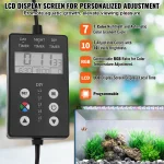 • Features: High-lumen, vibrant & uniform illumination, energy-efficient, LCD monitor with local time, adjustable colors/brightness/RGB ratios, 24/7 natural light cycles simulation, daytime/nighttime timers, power-off memory, flicker-free, 7-color night lighting, automatic gradual color cycling, 10 brightness levels, programmable settings